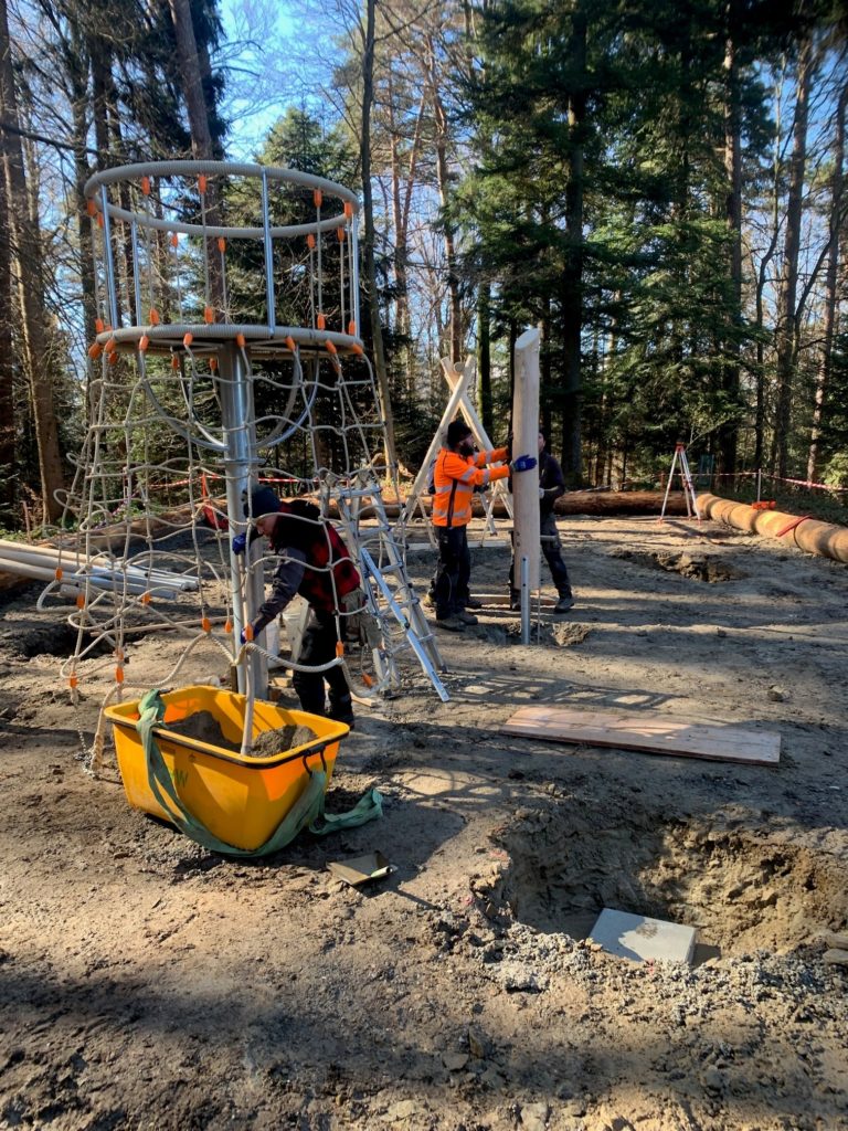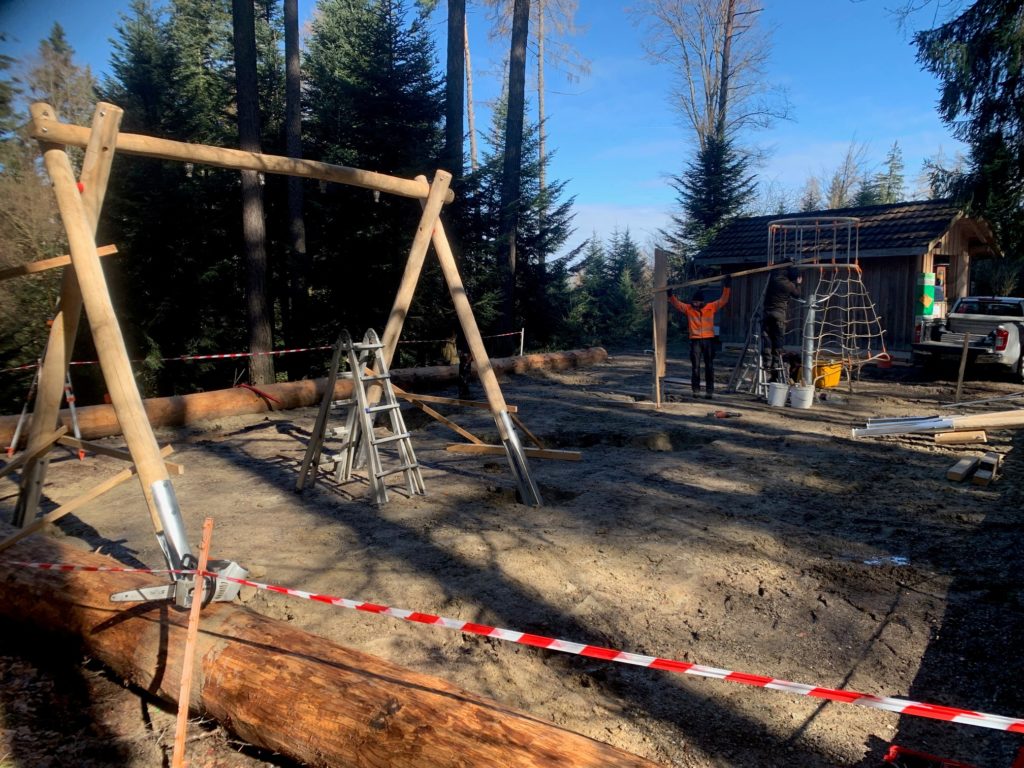 Die Aufbauarbeiten für den neuen Spielplatz haben begonnen.